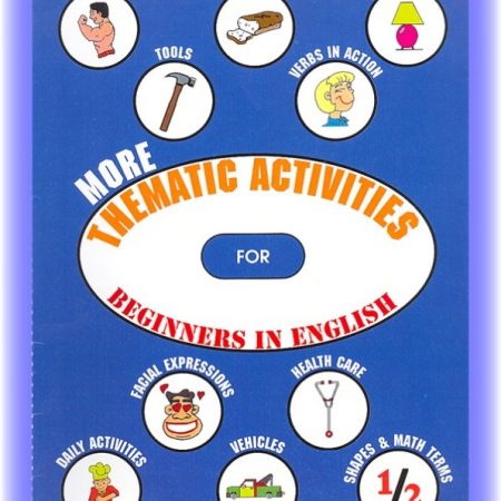 As the first book on this series the materials on this book are brought to your classroom and your new learners of esl through the use of illustrations and popular word games and activities. In ten different everyday life topics : Facial Expressions, Tools, Adjectives, Health Care, Food, Daily Activities, Shapes & Math Terms, Verbs of Action, In The House and Vehicles. Mentioned in the Thematic Activities for Beginners, this book will also enrich the learners vocabulary, introducing at least 24 thematically linked vocabulary words, numbered sentences using the vocabulary words in an everyday context, a drawings page with all the vocabulary words illustrated and numbered to correspond with the sentences mentioned above. It includes an Aswer Key